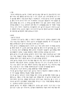 목차 I. 서론 II. 본론 1.놀이의 중요성 2.놀이에 영향을 미치는 요인(성,연령,가정환경,교육환경) 3.나의 놀이경험과 현대 유아의 놀이환경의 비교 4.앞으로 제공되어야 할 바람직한 놀이환경 III. 결론 본문 I.서론 유아의 하루일과는 놀이로 시작해서 놀이로 끝날 만큼 놀이의 연속과정이며, 유아들이 하는 모든 활동은 놀이라고 할 수 있다. 단순히 노는 것에 불과한 것이 아니라 놀이를 통해서 자연스럽게 학습이 가능해진다. 이처럼 놀이는 유아의 일상생활일 뿐만 아니라 유아가 여러 가지 지식획득의 수단으로서 활용되어 여러 발달과 밀접한 관련을 맺고 있다. 하고 싶은 말 1.유아들에게 있어서 놀이의 중요성에 대해 기술하고 놀이에 영향을 미치는 요인(성,연령,가정환경,교육환경 등)에 대해 설명하시오. 2.자신의 유아기 또는 아동기 놀이경험에 대해 자유롭게 기술하고 현대 유아/아동들의 놀이환경과 비교하여 설명한 후 앞으로 유아/아동들에게 제공되어야 할 바람직한 놀이환경에 대해 서술하시오. 키워드 놀이의 중요성, 놀이에 영향을 미치는 요인(성, 연령, 가정환경, 교육환경) |