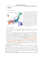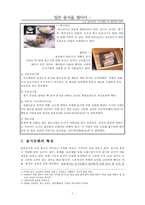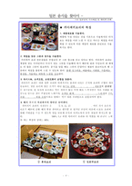 목차 1. 일본은? 1 ⑴ 자연적 환경 1 ⑵ 역사적 배경 1 2. 음식문화의 특징 2 3. 일본음식의 양식 3 ★ 카이세키요리의 특징 4 4. 일본의 식사예절 5 ⑴ 기본적인 예절 5 ⑵ 음식에 따른 예절 5 ⑶ 젓가락, 숟가락 사용방법 5 ⑷ 식사 중 삼가야할 행동 6 5. 일본 전통음식 6 6. 일본의 인기음식 BEST 5 7 본문 1. 일본은? ⑴ 자연적 환경 일본은 4개의 섬으로 이루어져 있으며 국토는 우리나라 남북한 전체 면적의 1.7배가량이 되며 약 70%가 산간지역이어서 평야가 적다. 기후는 온대기후의 특징을 나타내지만 중앙산맥을 중심을 동쪽은 태평양, 서쪽은 우리나라 동해의 영향을 많이 받는다. 특히, 남북으로 길게 위치하고 있기 때문에 기후가 아열대에서 한대로 남북 간의 차이가 크다. 사계절의 구분이 뚜렷하여 계절마다 다양한 농산물을 음식재료로 쓸 수 있다. 국토 전체가 어장으로 둘러싸여 있어서 일 년 내내 신선한 생선을 활용할 수 있다. ⑵ 역사적 배경 인구가 약 1억2,800만 명(2005년 통계)인 일본의 음식 문화 중에 지리적으로 가까운 우리나라에서 전래된 것이 있다. 한반도를 건너온 다양한 민족들이 오랫동안 살아오면서 일본민족을 형성했다. 794년 교토를 수도로 정하고 가마쿠라막부가 성립되기까지의 약 400년간 후지와라 씨를 중심으로 한 궁정귀족의 헤이안시대가 시작 되었다. 이때 일본요리의 기초가 정립되고 현존하는 최고의 조리법인 할선이 유행하게 되었다. 가마쿠라시대 에는 육식을 금하는 불교의 영향과 정치적 이유로 동물성 재료를 사용하지 않고 곡물과 채소로 만든 쇼유진(정진)요리가 사원을 중심으로 발달하였다. 16세기 말 무로마치시대에는 정식 손님을 접대할 때 술과 음식을 내놓는 요리인 본선요리가 확립이 되었다, 그 후 전국시대에는 무사의 시대로 차 문화의 발달과 더불어 양이 적고 계절적인 특징을 강조하는 카이세키(懷石)요리와 서양요리와 접목된 난반요리가 발달하였다. 에도시대에 들어오면서 일본 요리가 완성되었으며, 이시기에 연회나 회합에 어울리는 카이세키(會石)요리가 등장하였다. 19세기 초 메이지유신과 함께 서양문화를 받아들이면서 비로소 육류를 먹었기 때문에 일본은 채소, 버섯, 콩, 해조류, 생선을 위주로 한 음식문화가 형성되었다. 하고 싶은 말 좀 더 업그레이드하여 자료를 보완하여, 과제물을 꼼꼼하게 정성을 들어 작성했습니다. 위 자료 요약정리 잘되어 있으니 잘 참고하시어 학업에 나날이 발전이 있기를 기원합니다 ^^ 구입자 분의 앞날에 항상 무궁한 발전과 행복과 행운이 깃들기를 홧팅 키워드 레포트, 일본음식문화, 일본, 문화 |
