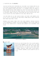 본문 □ 기이 산지의 영지와 참배길 기이 산지의 영지와 참배길 (紀伊山地の 場と 詣道)는 에 있는 사원과 참배길 등을 말한다. 나라와 교토의 남쪽에 있는 기이산은 숲이 울창하고 계곡,강,폭포가 많다. 또한 1,200여년간 일본의 전통적인 자연숭배사상인 신도와 중국과 한국에서 건너온 불교의 수행장소가 되고 있다. 또한 신도와 불교는 서로 융합되며 일본의 독특한 종교를 낳기도 하였다. 오시노/요미네(大峰/吉野)는 기이산의 북쪽 끝에 있으며, 슈겐도의 본산이다. 슈겐도는 일본의 고대 산악 신앙에 불교와 도교가 가미된 종교이다. 슈겐도의 수행자들과 사찰들이 많이 있다. 구마노 산잔(熊野三山)은 기이반도의 남동쪽 끝에 있는 구마노 혼구타이샤(熊野本宮大社), 구마노 하야타마타이샤(熊野速玉大社), 구마노나치타이샤(熊野那智大社) 이 3개의 신사를 말한다. 고야산(高野山)은 기이반도 북서부에 있는 불교 수행시설이다. 힌두교와 탄트라 신앙, 불교가 결합한 신곤밀교의 성지이다. 세 곳의 영지는 일본 종교와 문화 발전에 큰 영향을 끼쳤으며, 아직도 전국에서 많은 참배객과 관광객들이 찾고 있다. 오시노/요미네, 구마노산잔, 고야산 3곳의 영지와 나라와 교토에서 이어지는 참배길은, 2004년 유네스코로부터 세계문화유산으로 지정되었다. 길 이 세계유산으로서 등록된 예는 이 기이산자의 참배길과 <카미노 데 산티아고(스페인)의 순례길> 뿐이다. 기이산지 영지의 위치 기이산지의 참배로 오시노 산(大峰山) 오시노/요미네(大峰/吉野) 오시노/요미네(大峰/吉野)는 고대부터 신선이 사는 선계로 숭배되었던 요시노산과, 1500~1900m높이의 산들이 기이반도를 척추처럼 가로지르는 요미네산맥을 중심으로 하는 지역으로, 슈겐도의 성지로서 그 이름이 중국까지 알려졌다. 슈겐도는 일본 고래의 산악신앙에 중국에서 건너온 밀교, 도교 등이 융합되어 성립된 일본 고유의 민족 종교로서,산악수행에 의하여 영력를 습득하는 것을 최종 목적으로 삼고 있다. 하고 싶은 말 좀 더 업그레이드하여 자료를 보완하여, 과제물을 꼼꼼하게 정성을 들어 작성했습니다. 위 자료 요약정리 잘되어 있으니 잘 참고하시어 학업에 나날이 발전이 있기를 기원합니다 ^^ 구입자 분의 앞날에 항상 무궁한 발전과 행복과 행운이 깃들기를 홧팅 키워드 문화, 세계, 일본, 일본세계문화유산 |