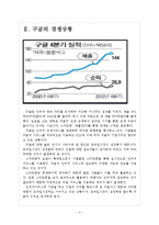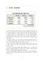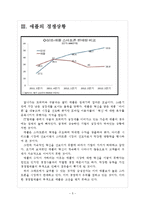 목차 목 차 Ⅰ. 트위터 경쟁상황 3 Ⅱ. 구글의 경쟁상황 4 Ⅲ. 애플의 경쟁상황 5 Ⅳ. 페이스북 경쟁상황 6 Ⅴ. 모바일시장 활용 6 본문 Ⅰ. 트위터 경쟁상황 트위터는 기업가치가 10조원에 달한다. 2011년 DST글로벌이 투자할 당시 트위터 가치는 80억달러였지만 1년 반 만에 10%가량 높아졌다. 트위터의 힘은 바로 `직관성과 단순함`이다. 다양한 기능을 가지고 있는 다른 SNS에 비해 접근성이 뛰어난 것이 특징이다. 이 때문에 모바일 광고 시장에서는 트위터를 주목했다. 트위터를 이용하는 인구는 갈수록 증가하고 있는 추세이다. 많은 사람들이 트위터를 이용하고 있으며 이에 따라 기업의 가치도 지속적인 상승세를 나타내고 있는 상황이다. 위의 표에서 살펴볼 수 있는 것처럼 트위터의 매출 추세는 급격히 증가하고 있다. 트위터에 대한 이용자들이 늘어나면서 높은 수익이 발생하고 있는 것이다. 트위터의 이러한 상승세는 앞으로도 지속될 것으로 보여진다. 참고문헌 참고자료 http://news.mk.co.kr/newsRead.php?year=2013&no=79750 <매일경제> http://www.mt.co.kr/view/mtview.php?type=1&no=2013021916321581956&outlink=1 <머니투데이> http://news.heraldcorp.com/view.php?ud=20130219000263&md=20130219113841_AN <헤럴드경제> http://news.chosun.com/site/data/html_dir/2013/02/19/2013021900240.html <조선일보> http://www.etnews.com/news/nationland/2721889_1495.html <전자신문> http://www.ddaily.co.kr/news/news_view.php?uid=101027 <디지털데일리> http://biz.chosun.com/site/data/html_dir/2013/02/14/2013021402318.html <조선비즈> http://www.ittoday.co.kr/news/articleView.html?idxno=33813 <아이티투데이> http://www.ddaily.co.kr/news/news_view.php?uid=101017 <디지털데일리> http://news.naver.com/main/read.nhn?mode=LSD&mid=sec&sid1=101&oid=001&aid=0006092722 <연합뉴스> 하고 싶은 말 IT업체 IT업체들의 경쟁상황분석-트위터,구글,애플,페이스북 보고서 키워드 IT업체, 경쟁상황, 구글, 애플, 트위터, 페이스북 |