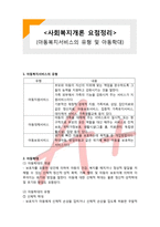 본문 1. 아동복지서비스의 유형 유형 내용 아동지원서비스 부모와 아동이 자신의 지위에 맞는 책임을 완수하도록 그들의 능력을 지원하고 강화시키는 것을 말한다. 가족 외부에서 가족의 기능을 강화시켜 주는 서비스가 지원서비스이다. 기본적인 재정적 경제적 지원, 가족치료, 상담, 집단치료와 같은 정신치료, 아동보호서비스, 집중적 가족유지서비스, 데이케어 서비스, 가족생활교육 등이 있다. 아동대체서비스 아동의 가족을 대체해 주는 서비스로서 일시적, 또는 항구적으로 부모의 모든 역할을 대신 해주는 서비스로 친척보호, 위탁가정보호, 생활시설(그룹 홈, 치료센터, 독립생활시설), 입양 등이 있다. 아동보호서비스 위기에 빠진 아동을 보호하는데 목적을 둔 개입방법이다. 학대아동, 방임아동과 같은 위기에 빠진 아동을 보호하는 서비스이다. 하고 싶은 말 사회복지개론 요점정리입니다. 시험대비 시 보시면 좋습니다. 좋은결과 받으세요^^ 키워드 복지, 시험대비, 요점정리, 사회복지개론, 서비스, 대비 |