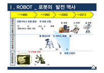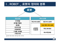 목차 Ⅰ. ROBOT 1. 로봇의 정의와 분류 2. 로봇의 발전 역사 3. 로봇의 기술 Ⅱ. 의료용 전문 서비스 로봇 1. 의료용 전문 서비스 로봇 시장분석 2. 의료용 전문 서비스 로봇의 중요요인 3. 의료용 전문 서비스 로봇의 분류 4. 기업사례 Ⅲ. 전략제시 1. 국내외 로봇산업 분석 2. 국내 로봇산업의 문제점 3. 전략제시 Ⅳ. 결론 본문 Ⅱ. 의료용 전문 서비스 로봇 - 기업사례 기븐이메징 필캠 필캠 캡슐형 내시경은 필캠 SB를 통해 소장의 상태를 찍어 보여줌 필캠 ESO는 식도의 상태를 필캠 콜론(COLON)으로 결장의 상태를 보여줌 필캠 캡슐은 초소형 비디오 카메라로 환자가 이 캡슐을 삼키면 위장관 소장 내부 상태를 사진으로 보여줌 보스턴 다이나믹스 - 개복수술시뮬레이터 수술시뮬레이터는 근래에 들어 프로세서의 성능이 좋아지면서 MRI나 CT 영상 등을 활용하여 개발이 가속화되고 있음 현재 미국에서는 의사들에게 가상환경에서의 수술 훈련을 의무화하려는 움직임이 있으며 여기에 맞물려 복강경, 대장 내시경 등의 다양한 수술에서의 시뮬레이터가 개발 중에 있음 참고문헌 삼성경제 연구소, 로봇산업의 떠오르는 기회, 전문 서비스 로봇,2011-06-16 seri 경영노트 107호 한국산업기술평가관리원 (2010). "13 로봇." 한국산업기술평가관리원 IFR (2010). Executive summary of World Robotics 2010 월간 유비쿼터스, IT기반 융합형 의료로봇의 동향, 국내외 의료로봇 현황과 발전방향-전남대학교 박종오 2008년 4월 정보과학회지 26권 4호 Japan Robotics Association 삼성경제연구소-유헬스(u-Health) 시대의 도래 한국로봇산업진흥원 (로봇실태조사2011) 산업연구원, "차세대 성장 동력 확충을 위한 로봇산업의투자로드맵" IT 벤처기업 연합회, 해외 지능형 로봇 시장 분석 한국지능로봇산업협회, "2004 지능로봇산업 실태조사 보고서", 2004-11-20 키워드 기술경영, 로봇산업, 의료전문, 서비스, 산업 |