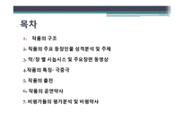 목차 1. 작품의 구조 2. 작품의 주요 등장인물 성격분석 및 주제 3. 막/장 별 시놉시스 및 주요장면 동영상 4.작품의 특징- 극중극 5. 작품의 출전 6. 작품의 공연약사 7. 비평가들의 평가분석 및 비평약사 본문 1.도입부 : 1막 성 앞 망대에서 보초를 서던 근위병들과 호레이쇼가 선왕의 망령을 발견한다. 햄릿과 왕비(거투루드), 오필리아, 반동인물인 왕(숙부.클로디어스), 폴로니어스, 레어티즈 및 신하들 등장 호레이쇼와 근위병들은 햄릿에게 망령이 나타났음을 알리고 선왕의 망령을 기다리던 햄릿과 호레이쇼는 망령이 왕(숙부. 클로디어스)에게 살해되었음을 밝히자, 햄릿이 복수를 맹세하고 광인 행세를 하기로 한다. 2.상승부 : 2막 성 앞 망대에서 보초를 서던 근위병들과 호레이쇼가 선왕의 망령을 발견한다. 햄릿과 왕비(거투루드), 오필리아, 반동인물인 왕(숙부.클로디어스), 폴로니어스, 레어티즈 및 신하들 등장 호레이쇼와 근위병들은 햄릿에게 망령이 나타났음을 알리고 선왕의 망령을 기다리던 햄릿과 호레이쇼는 망령이 왕(숙부. 클로디어스)에게 살해되었음을 밝히자, 햄릿이 복수를 맹세하고 광인 행세를 하기로 한다. 참고문헌 http://user.chollian.net/~moon2923/W.%20Shakespeare.htm http://ko.wikipedia.org/wiki/%ED%96%84%EB%A6%BF http://www.seelotus.com/gojeon/oe-kuk/drama/ham-lit.htm 한 권으로 읽는 셰익스피어 / Shakespeare, William, 1564-1616 (작가정신) 햄릿 / 윌리엄 셰익스피어 (문예출판사) Laurence Olivier's 1948 Hamlet 『「햄릿」에 나타난 「극중극」의 연구』 박원순 『 극중극의 이중 구조 : 극중 관객 햄릿』 방승희 셰익스피어 4대 비극: 해설과 번역/셰익스피어 지음; 이경식, 1996 셰익스피어 작품 해설/한국 셰익스피어 학회,2000 셰익스피어 극의 이해: 비극/ 이대석 지음, 2002 http://en.wikipedia.org/wiki/Hamlet http://www.rsc.org.uk/explore/hamlet/sources.aspx Wikipedia, the free encyclopedia Criticism of Individual Plays Shakespeare http://shakespeare.palomar.edu/playcriticism.htm Hamlet Criticism http://www.enotes.com/hamlet-criticism/hamlet-vol-59 햄릿의 자아의식에 관한 연구 |조한나 저 |2008 키워드 구조분석, 작품, 햄릿, 구조, 분석 |
