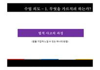 목차 수업의도 수업방식 본문 수업 방식 1. 매체 (1) 조문 법의 기본은 조문. 조문이 쓰여진 방식 자체가 법적 사고력과 직접적으로 관련되기 때문 법 교육은 조문을 해석하는 것에서부터 시작된다고 할 수 있다. 즉, 교과서로서의 조문 (2) 학습지 학습효과 극대화 구조도를 통해 지난 시간에 배운 내용을 스스로 참고하여 학습의 구조를 잡아가도록 하기 위함. 추상적인 개념을 눈으로 확인하며 학습효과 향상. 수업시간 활동을 통해 주의를 집중. 토론에 활용 키워드 조문, 학습효과, 수업, 학습, 방식, 평등권, 사회교육 |