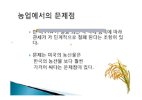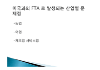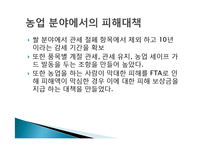 목차 -농업 -어업 -제조업 서비스업 본문 한 미 FTA 가 발효 되면 각 각에 품목에 따라 관세가 가 단계적으로 철폐 된다는 조항이 있다. 문제는 미국의 농산물은 한국의 농산물 보다 훨씬 가격이 싸다는 문제점이 있다. 쌀 분야에서 관세 철폐 항목에서 제외 하고 10년이라는 감세 기간을 확보 또한 품목별 계절 관세, 관세 유지, 농업 세이프 가드 발동을 두는 조항을 만들어 높았다. 또한 농업을 하는 사람이 막대한 피해를 FTA로 인해 피해액이 막심한 경우 이에 대한 피해 보상금을 지급 하는 대책을 만들었다. 키워드 FTA, 체결, 협약, 발생, 문제점, 농업, 어업, 서비스업, 제조업, 피해, 대책, 개선점, 해결방안, 조사분석 |